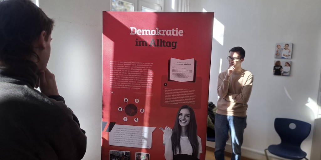 Die von der Friedrich-Ebert-Stiftung initiierte Gastausstellung beleuchtet die historischen und aktuellen Formen des Rechtsextremismus und zeigt auf, mit welchen Methoden extremistische Gruppierungen insbesondere junge Menschen ansprechen. Mit interaktiven Elementen, Zeitzeugenberichten und vertiefenden Informationen setzt die Ausstellung Diskussionsimpulse und lädt dazu ein, sich aktiv mit demokratischen Werten auseinanderzusetzen.